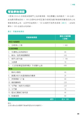 發展項目的土地,以及中至長期約 4 100 公頃的可能供地項目(表2),以幫助