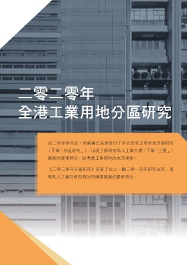 二零二零年 全港工業用地分區研究 自二零零零年起,規劃署已先後進行了多次全港工業用地分區研究 (下稱「分區研究」),以便了解現有私人工業大廈(下稱「工廈」) 最新的使用情況,以考慮工業用地的未來規劃。 《二零二零年分區研究》更新了自上一輪二零一四年研究以來,現 有私人工廈在使用情況和轉型進展的最新情況。