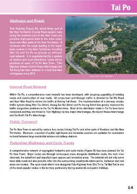 Within Tai Po, a comprehensive road network has been developed, with on-going upgrading of existing
